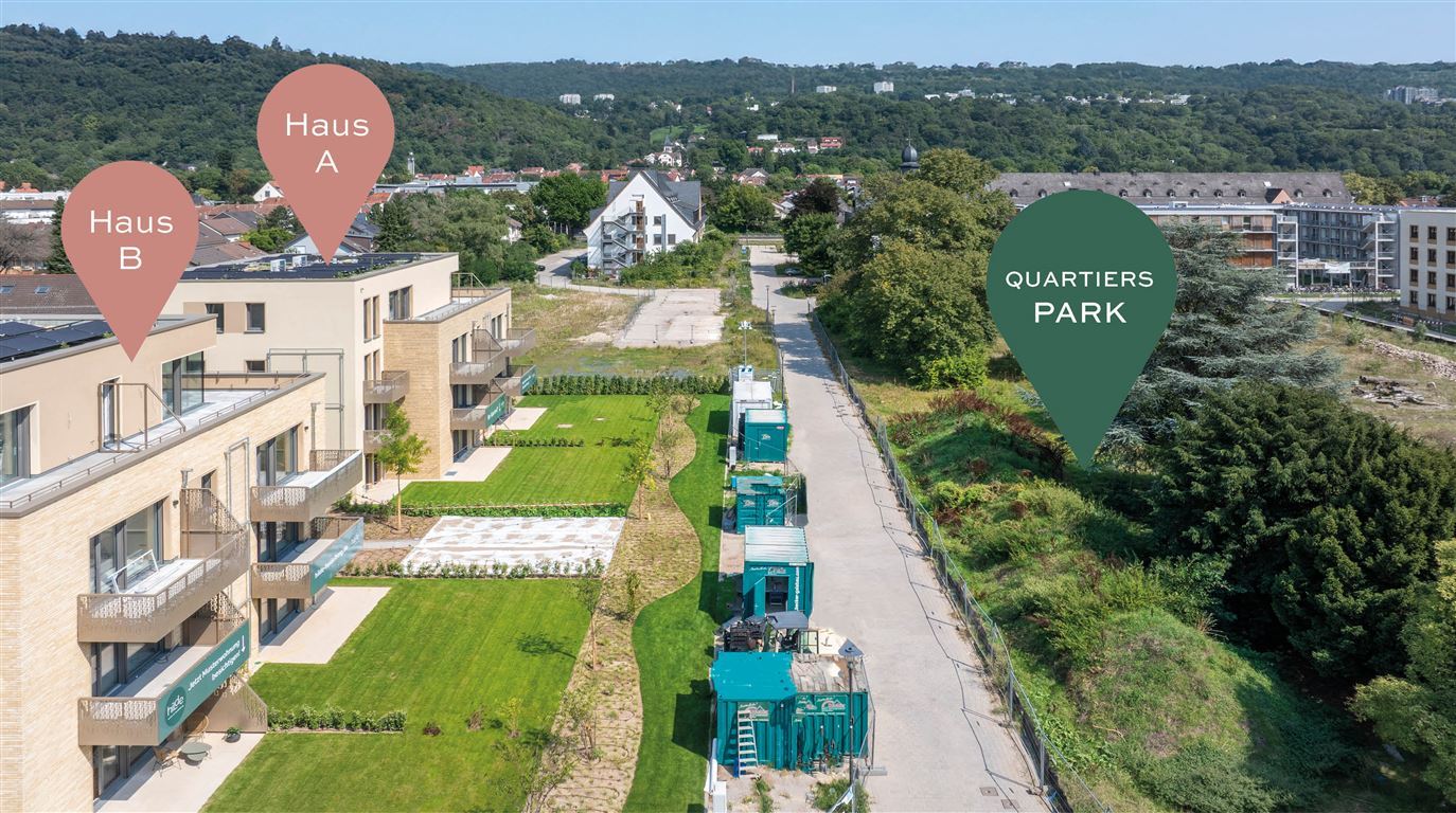 Die fünf Solitäre verbindet eine sensible Landschaftsgestaltung. Es entstehen 2- bis 4-Zimmer-Wohnungen sowie 5- und 6-Zimmer-Maisonettes und Penthäuser, die ganz unterschiedlichen Bedürfnissen gerecht werden. Die Gebäude orientieren sich zum großen Quartierspark - so entstehen schöne, grüne Blickbeziehungen. Es sind nur noch 2 Einheiten zum Kauf verfügbar – die Fertigstellung erfolgt voraussichtlich zum Jahresende 2025.
