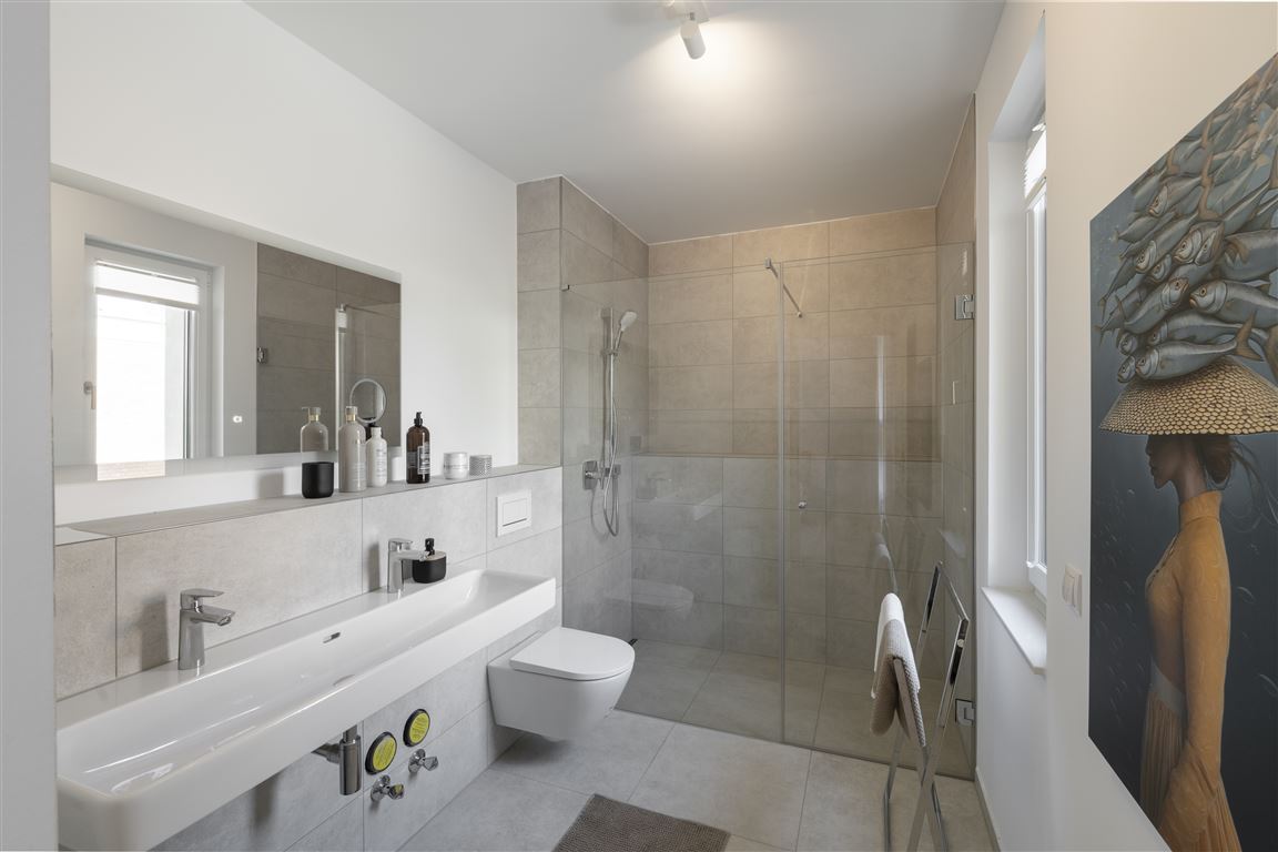 * Sanitärausstattung namhafter Hersteller, wie Laufen und Hansgrohe