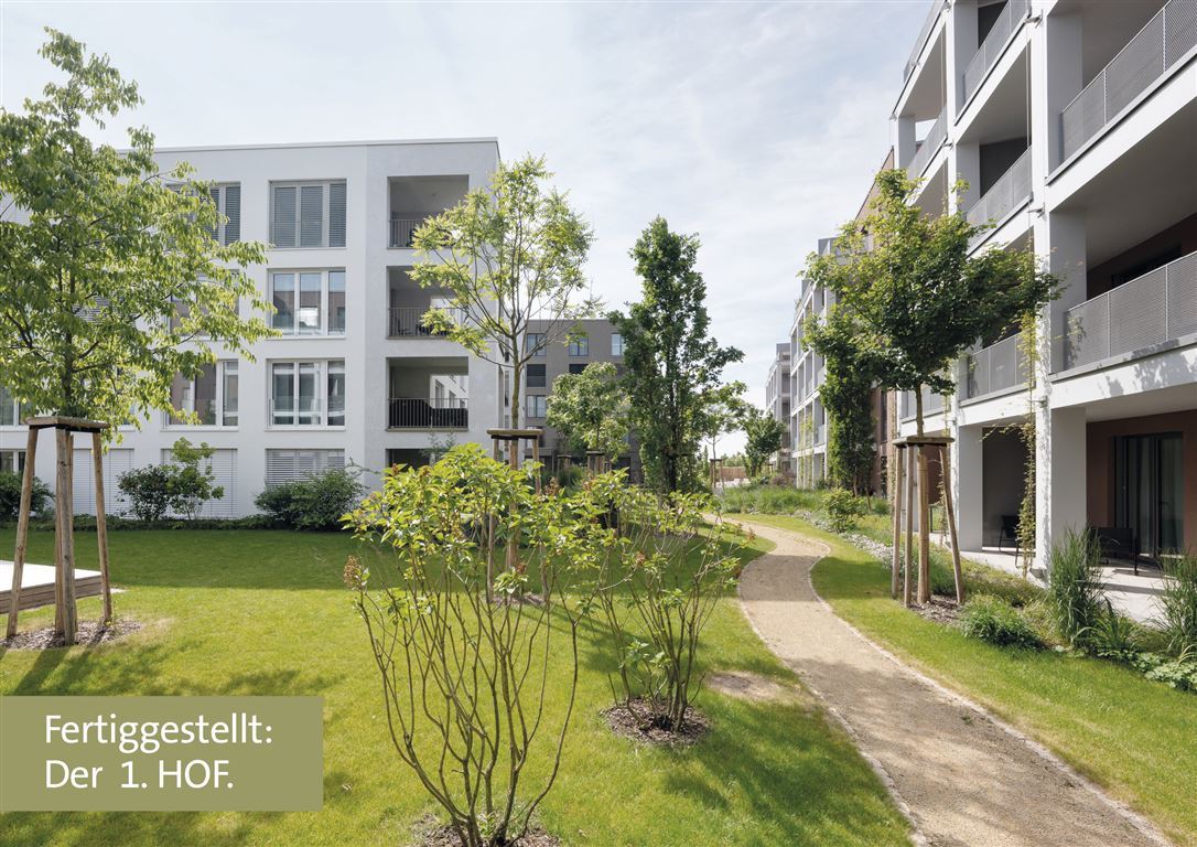 Im zweiten Bauabschnitt (2.HOF) entsteht ein stilvolles Ensemble aus vier Häusern mit 2-4-Zimmer-Eigentumswohnungen – drei Häuser entstehen als elegante Solitäre mit Blick ins Grüne.