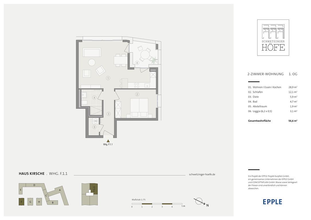 Die SCHWETZINGER HÖFE - erweitern die Schwetzinger Oststadt. Von dort sind nicht nur der Bahnhof mit dem umfangreichen ÖPNV-Angebot fußläufig zu erreichen, sondern auch die Schwetzinger Innenstadt und das Residenzschloss. Kindergärten und Schulen, Ärzte und Apotheken befinden sich in der Nachbarschaft. Direkt gegenüber lassen ein Supermarkt und ein Bio-Markt keine Wünsche offen. Zur Autobahn A6 gelangt man in nur 8 Fahrminuten.