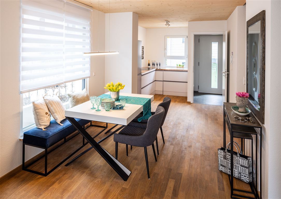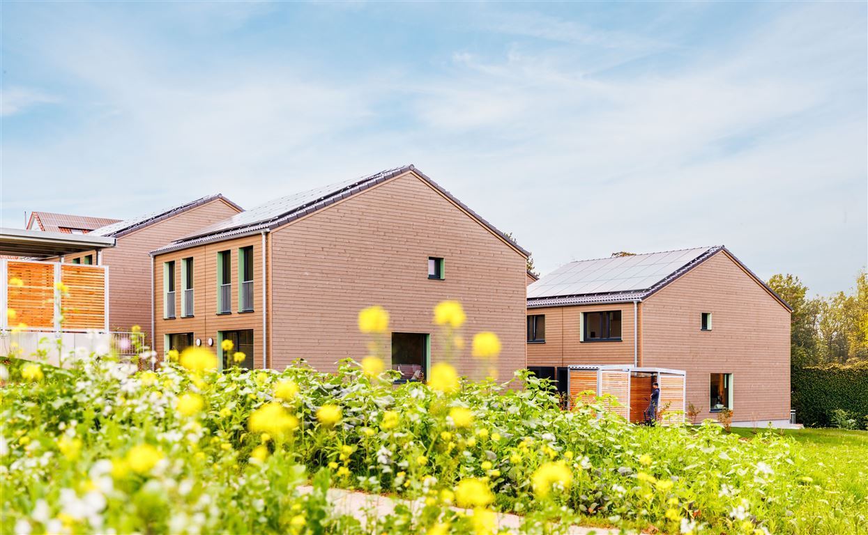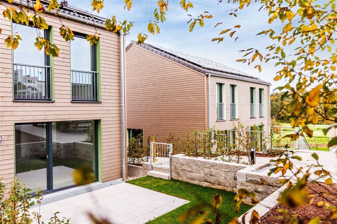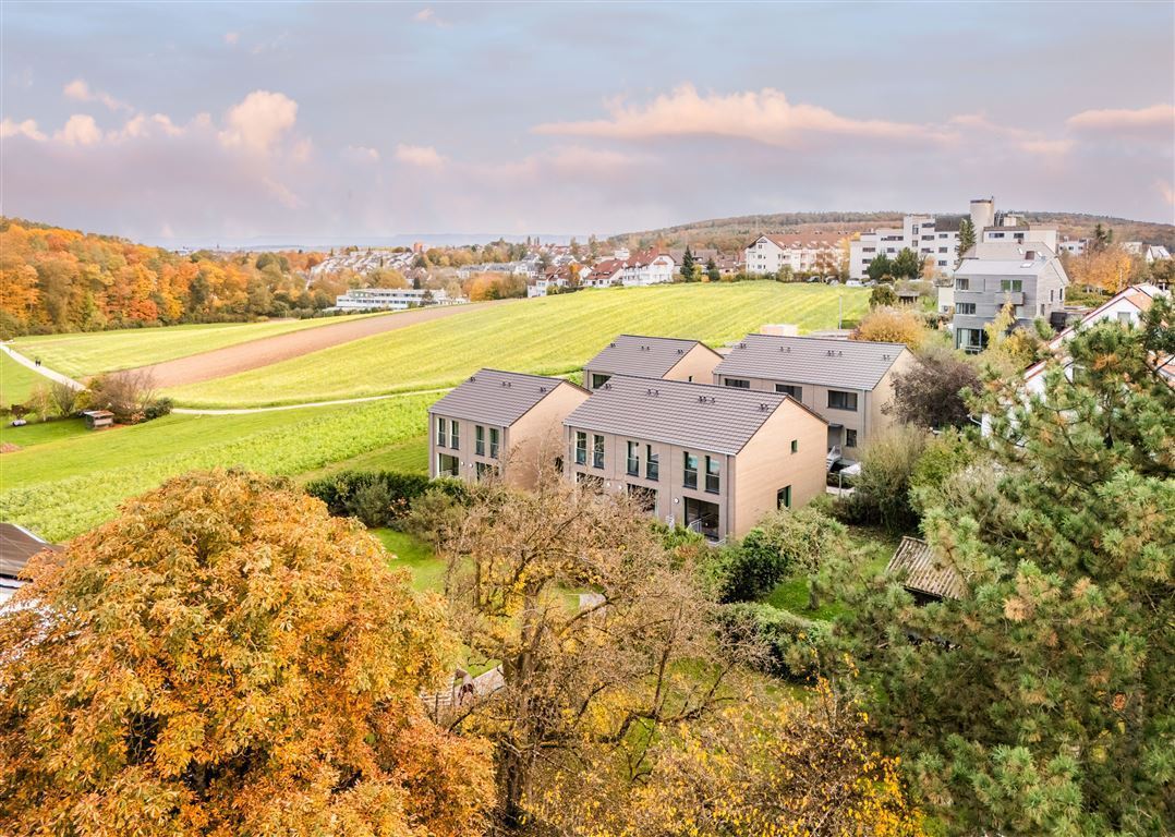 Unsere FilderHäusle zeichnen sich durch ihre herrliche Lage auf den Fildern aus. Die Architektur nimmt diesen Naturgedanken auf: Erdgeschoss und Obergeschoss werden in Holzbauweise errichtet, die Fassade bekommt eine schöne Holzoberfläche. Die Fenster- und Türrahmen zeigen sich nach außen in drei verschiedenen Grüntönen wie sie auch auf den Fildern zu finden sind. Das Haus sieht deshalb bereits von außen sehr natürlich aus und fügt sich wie selbstverständlich in die Umgebung ein. Die Photovoltaikanlage auf dem Dach unterstützt den “grünen Gedanken“. Die FilderHäusle sind fertiggestellt und können besichtigt werden.