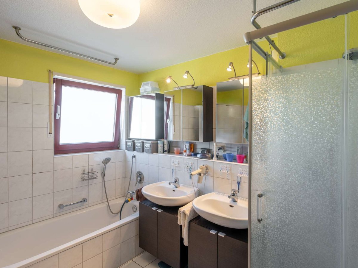 - Tageslicht Vollbad mit Doppelwaschtisch und WM-Anschluss