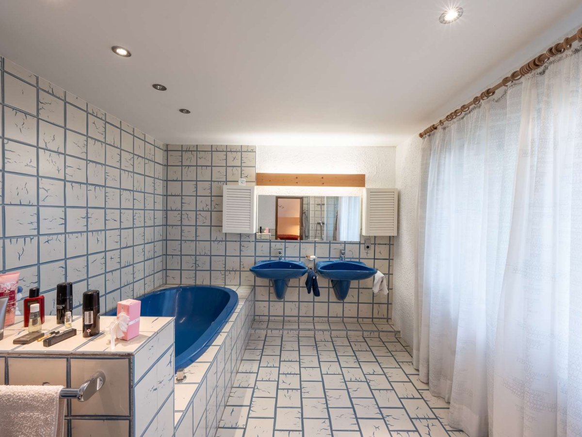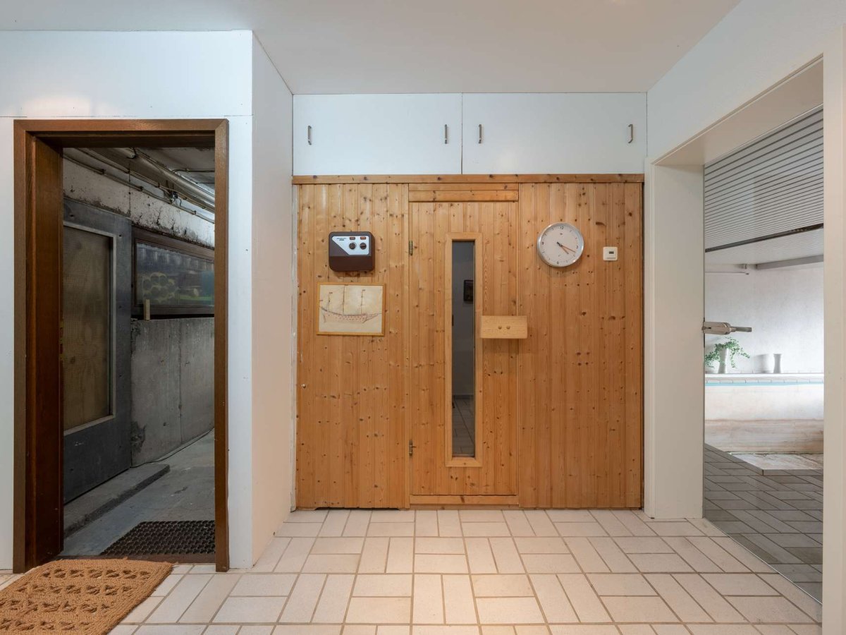 Die Immobilie verfügt über eine Ölzentralheizung, Holz-Isolierglasfenster und ist baujahresbedingt renovierungsbedürftig; dadurch bietet sie jedoch hervorragende Substanz mit viel Potenzial für individuelle Anpassungen. Ergänzende Annehmlichkeiten sind ein Hallenschwimmbad (das als Ausbaureserve für zusätzliche Wohnfläche genutzt werden könnte), eine Sauna sowie ein eigener Sportbereich, die Wellness- und Fitnessmöglichkeiten direkt im Haus ermöglichen. Zusätzlich gibt es einen Hauswirtschaftsraum und Kellerräume, die ausreichend Stauraum und Nutzfläche bereitstellen.