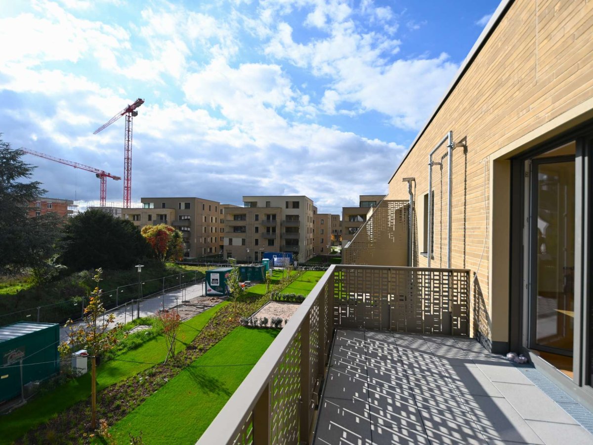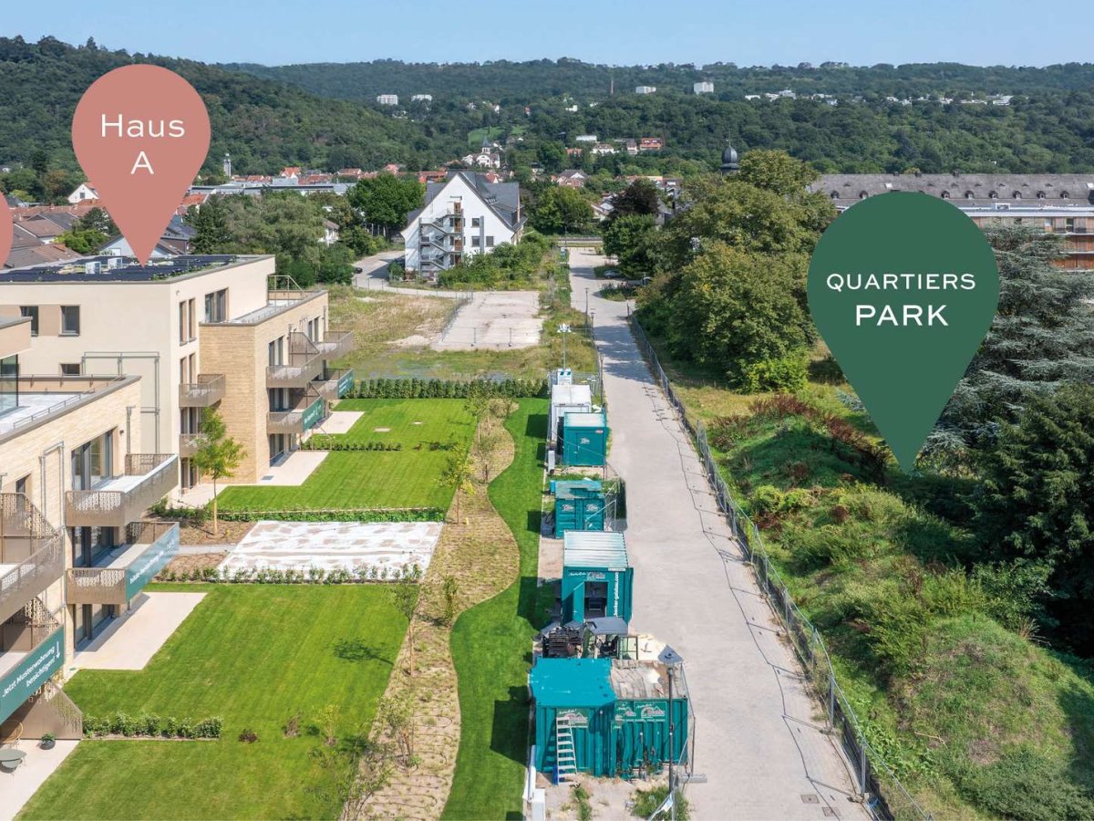 Die überschaubaren Hausgemeinschaften und die offene Quartiersgestaltung sorgen für ein angenehmes Wohnumfeld. Alle Gebäude sind in Richtung der grünen, unbebauten Quartiersmitte ausgerichtet und bieten dadurch einen freien Blick ins Grüne. Die hier angebotene Wohnung befindet sich in einem der beiden solitär stehenden Punkthäuser mit jeweils 10 Parteien , die von der besonderen Lage profitieren: Der Südbalkon eröffnet einen herrlichen Ausblick in die parkähnliche Mitte des Quartiers, den Hospital-Park sowie auf das historische Chapel-Gebäude.