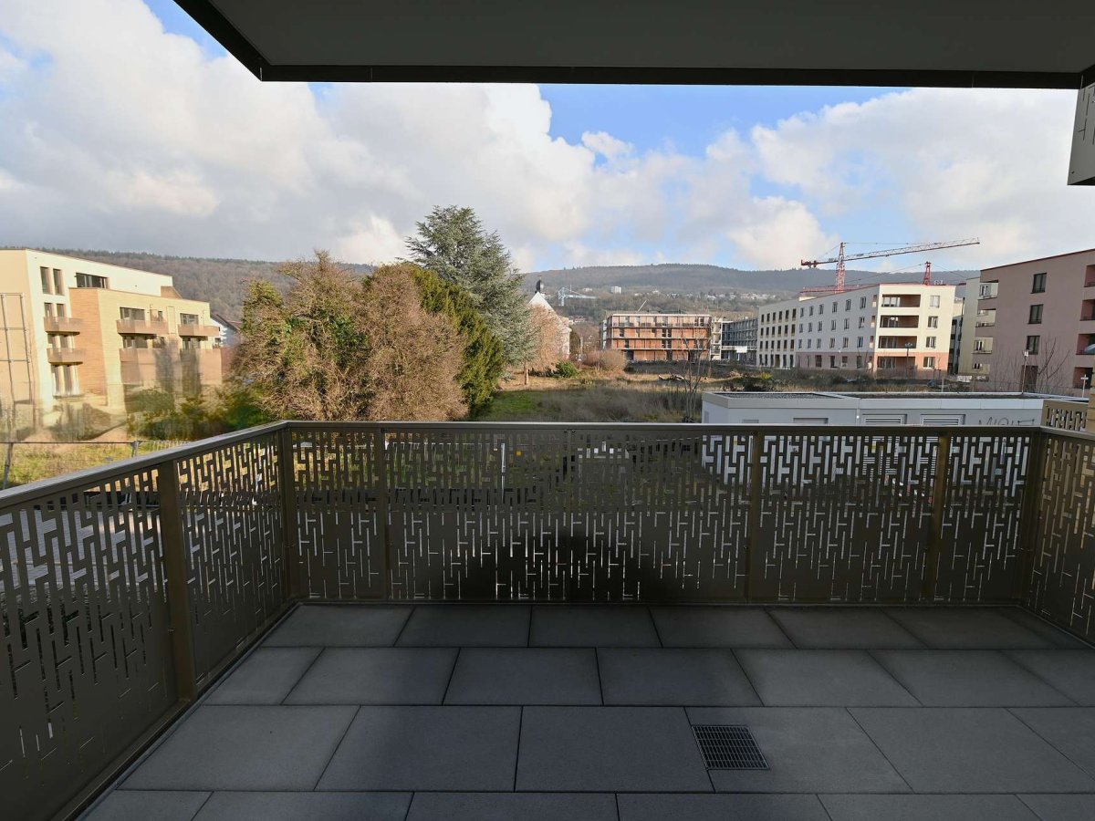 Die moderne Neubauwohnung befindet sich im ersten Obergeschoss eines freistehenden Mehrfamilienhauses innerhalb des neuen Wohnensembles „hiLde“ in Heidelbergs Süden. Das Projekt entsteht entlang der Hilde-Domin-Straße und umfasst insgesamt fünf Punkthäuser mit 56 hochwertig ausgestatteten Eigentumswohnungen, die zwischen zwei und sechs Zimmern variieren.