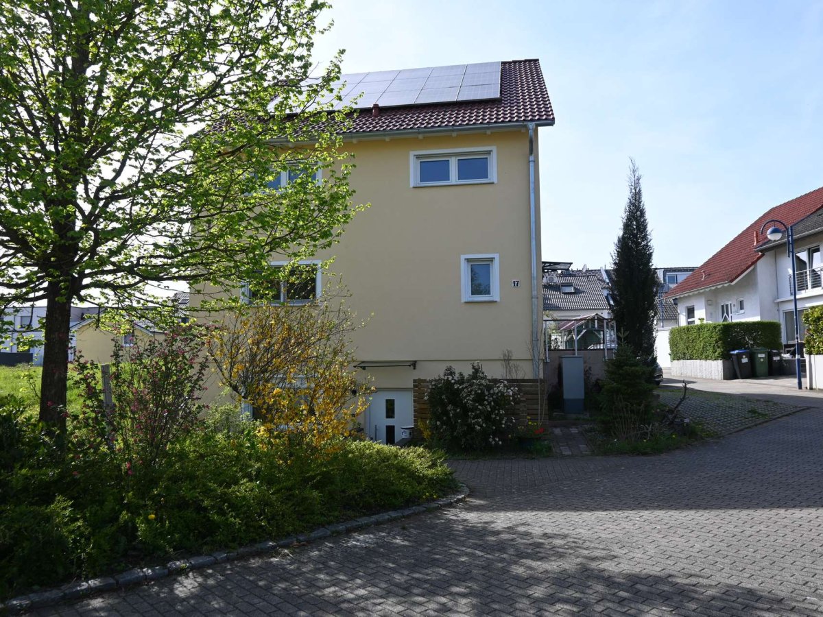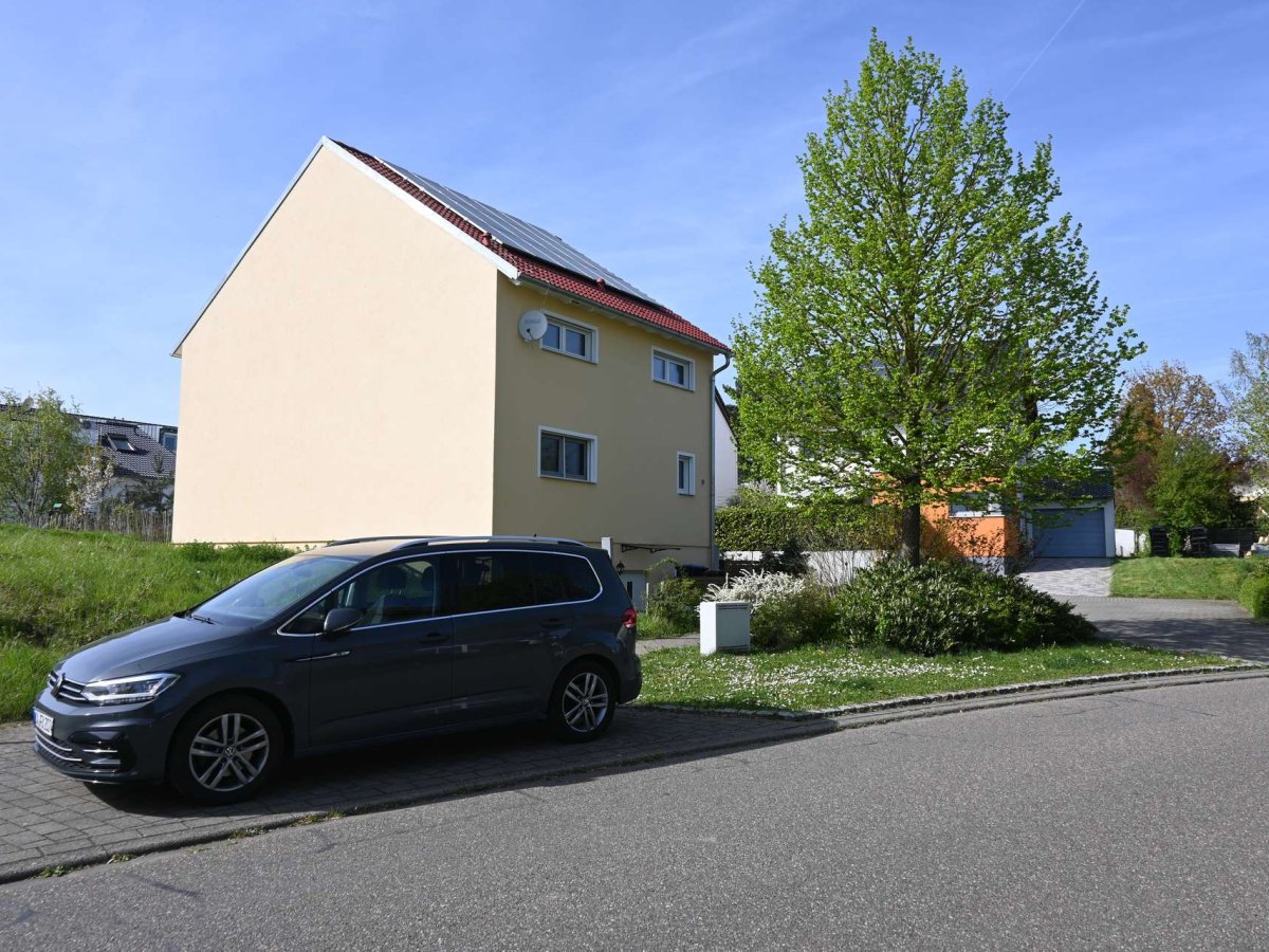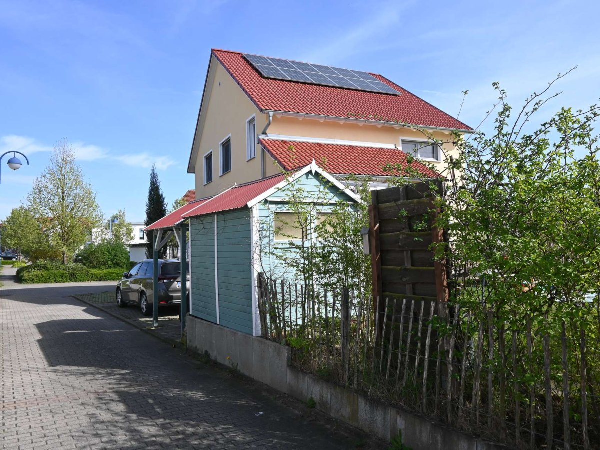 Von der nach Westen ausgerichteten Terrasse, die mit einer Markise ausgestattet ist, lässt sich der Feierabend in der Abendsonne besonders genießen. Im gepflegten Garten befinden sich ein Gartenhäuschen. Für Fahrzeuge stehen zwei Außenstellplätze vor dem Haus zur Verfügung, ergänzt durch eine Wallbox für das bequeme Laden von Elektrofahrzeugen sowie einem Fahrradunterstand.