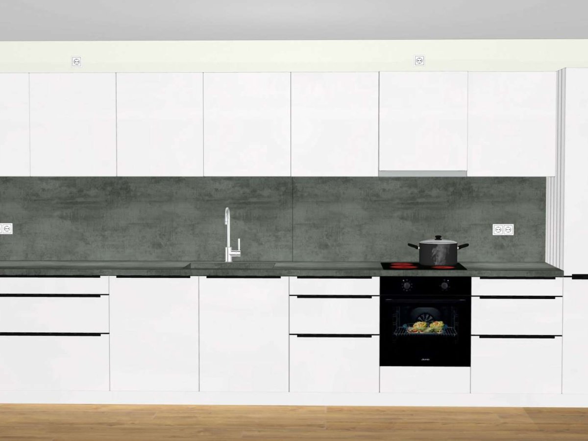 Der offen gestaltete Wohn-/Ess- und Küchenbereich bildet das Herzstück der Wohnung. Er bietet großzügige Stellflächen und einen harmonischen Übergang zur Loggia, die sowohl vom Wohnzimmer als auch vom Hauptschlafzimmer direkt zugänglich ist. Die vorhandene moderne Einbauküche fügt sich stilvoll in das Gesamtbild ein.