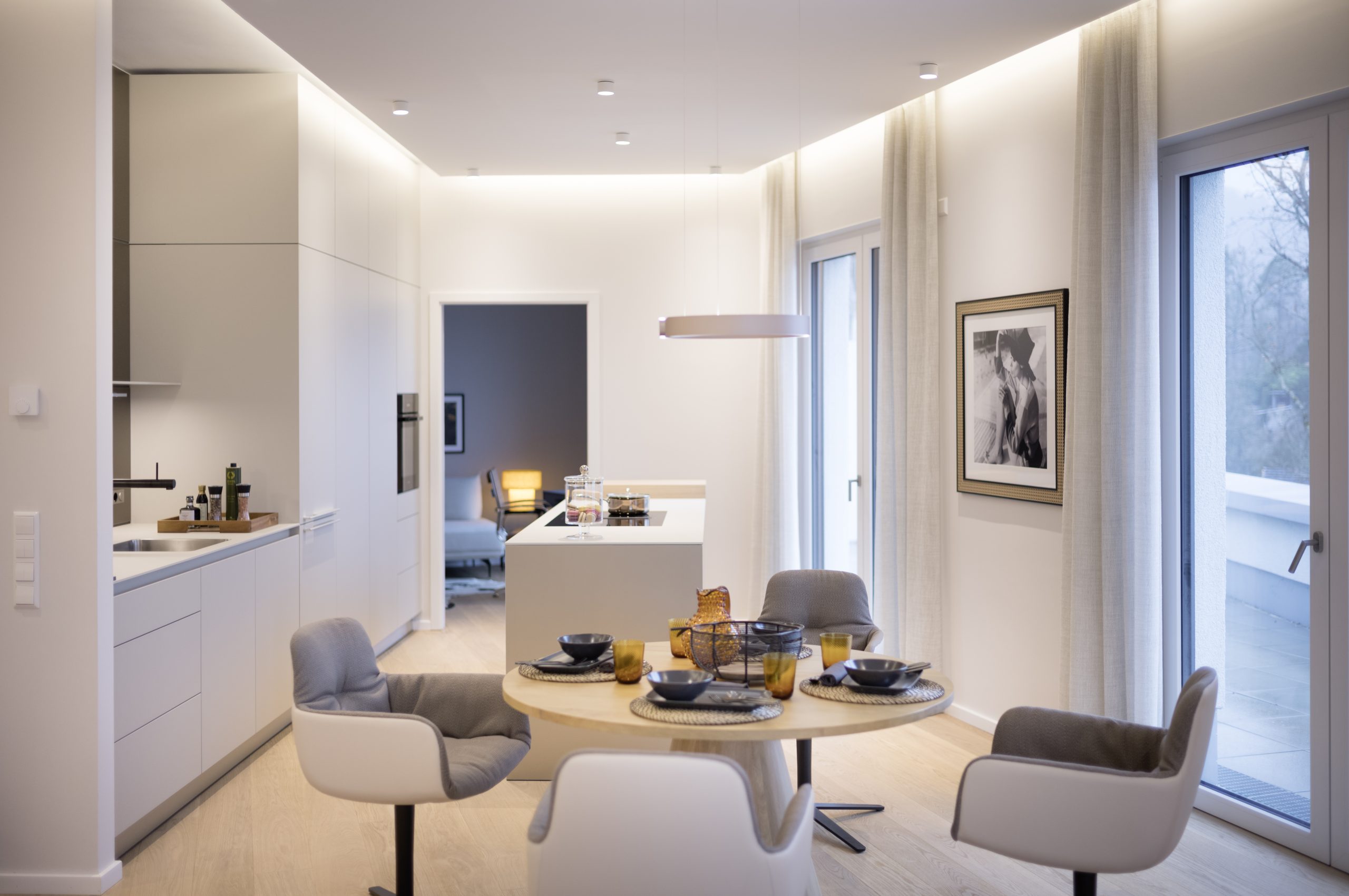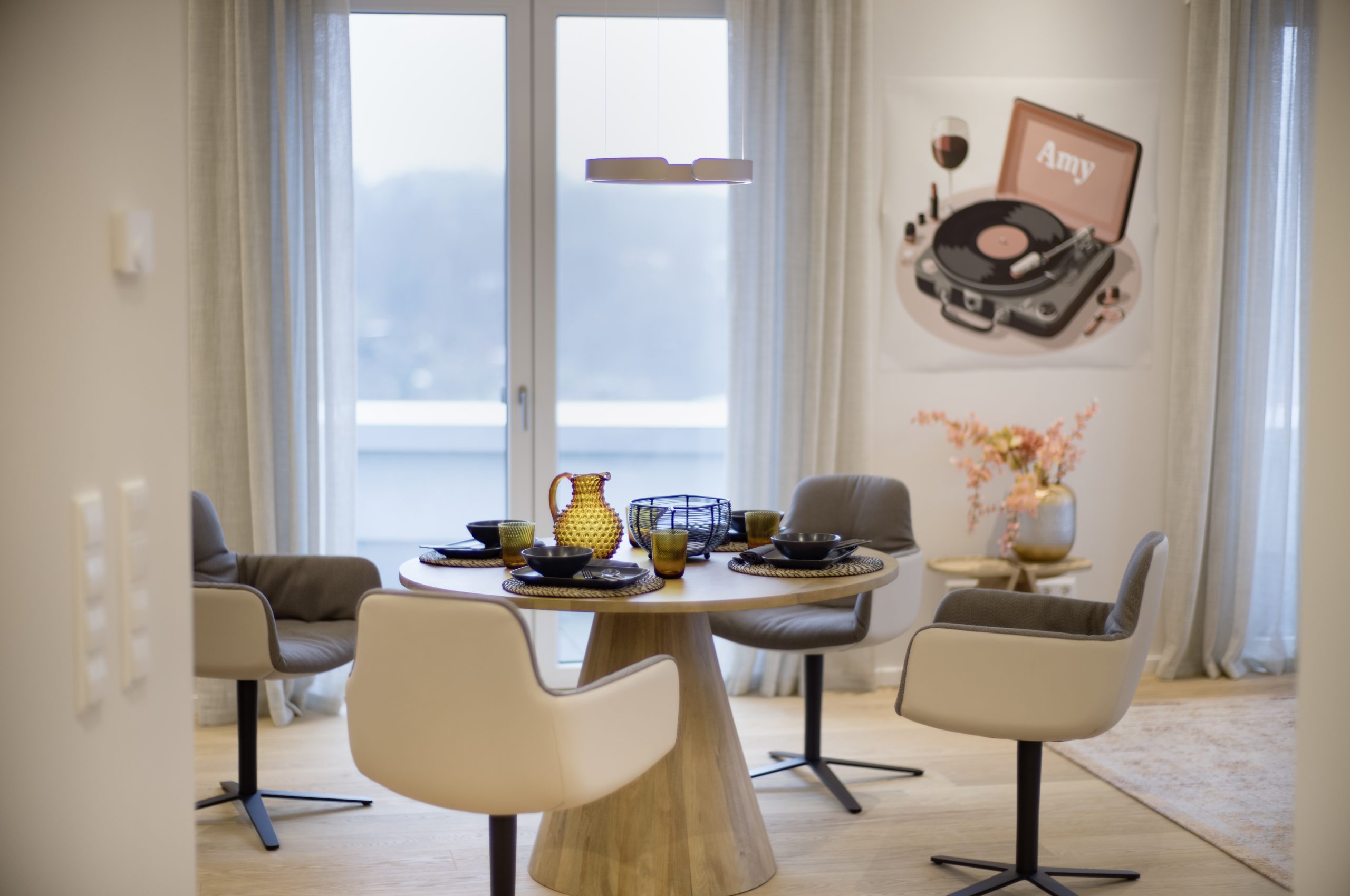 Bruno ist das Penthaus für Menschen, die Geselligkeit lieben. Offene Küche, große Dachterrasse und ein Gästezimmer schaffen Raum für Begegnungen – kombiniert mit modernem Design und Energie.