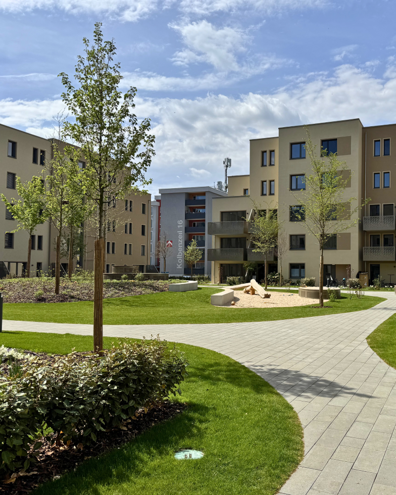 Benannt nach der Lyrikerin Hilde Domin steht das Projekt für Ankommen, Identität und Heimat. Architektonisch spiegelt sich dieser Gedanke in vielen Details wider – von den Balkongeländern bis zu Zitaten an den Hauseingängen. Das autofreie Quartier mit viel Grün und nachhaltiger Infrastruktur schafft hohe Lebensqualität und einen zukunftsorientierten Rahmen für modernes Wohnen.